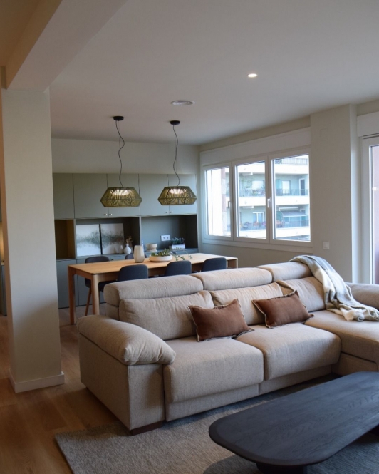 L’objectiu era crear una zona de dia funcional, però acollidora, on cuinar, compartir, descansar i gaudir formés part d’un mateix recorregut, sense barreres visuals ni interrupcions. Un espai que afavoreix la relació entre estances i millora la sensació d’amplitud i confort.